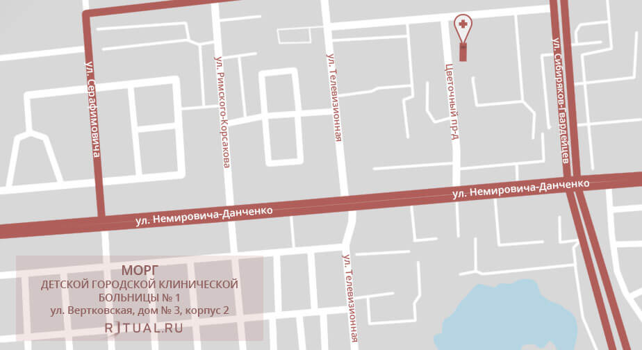 От станции метро «Площадь Маркса» автобусом № 43 подъехать до «Вертковской улицы» и пройти 400 м к корпусу морга.